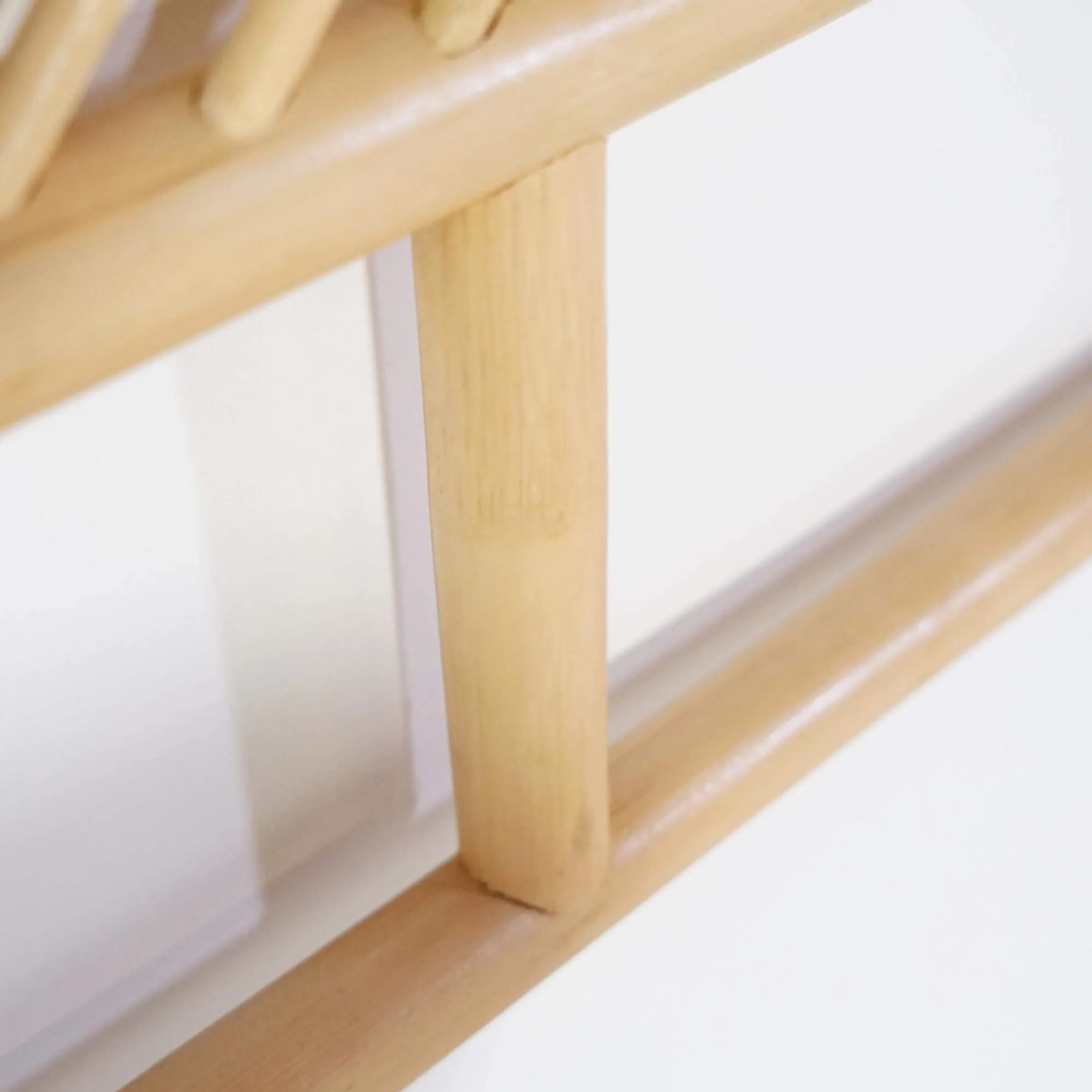 Het rotan, geselecteerd om zijn soepelheid en duurzaamheid, toont hier al zijn rijkdom. Bij aanraking voelt het materiaal van dit hoofdbord van 160 cm in riet glad, warm en bijna satijnachtig aan, terwijl de natuurlijke tint het licht vangt en meteen een gevoel van rust oproept. We hebben bijzondere aandacht besteed aan de afwerking: verzorgde bindingen, discrete verbindingen en regelmatige rondingen. Deze details, zowel van dichtbij als vanop afstand zichtbaar, onderstrepen het ambachtelijke karakter van dit hoofdbord van 160 cm in riet (rotan), waar we bijzonder trots op zijn.