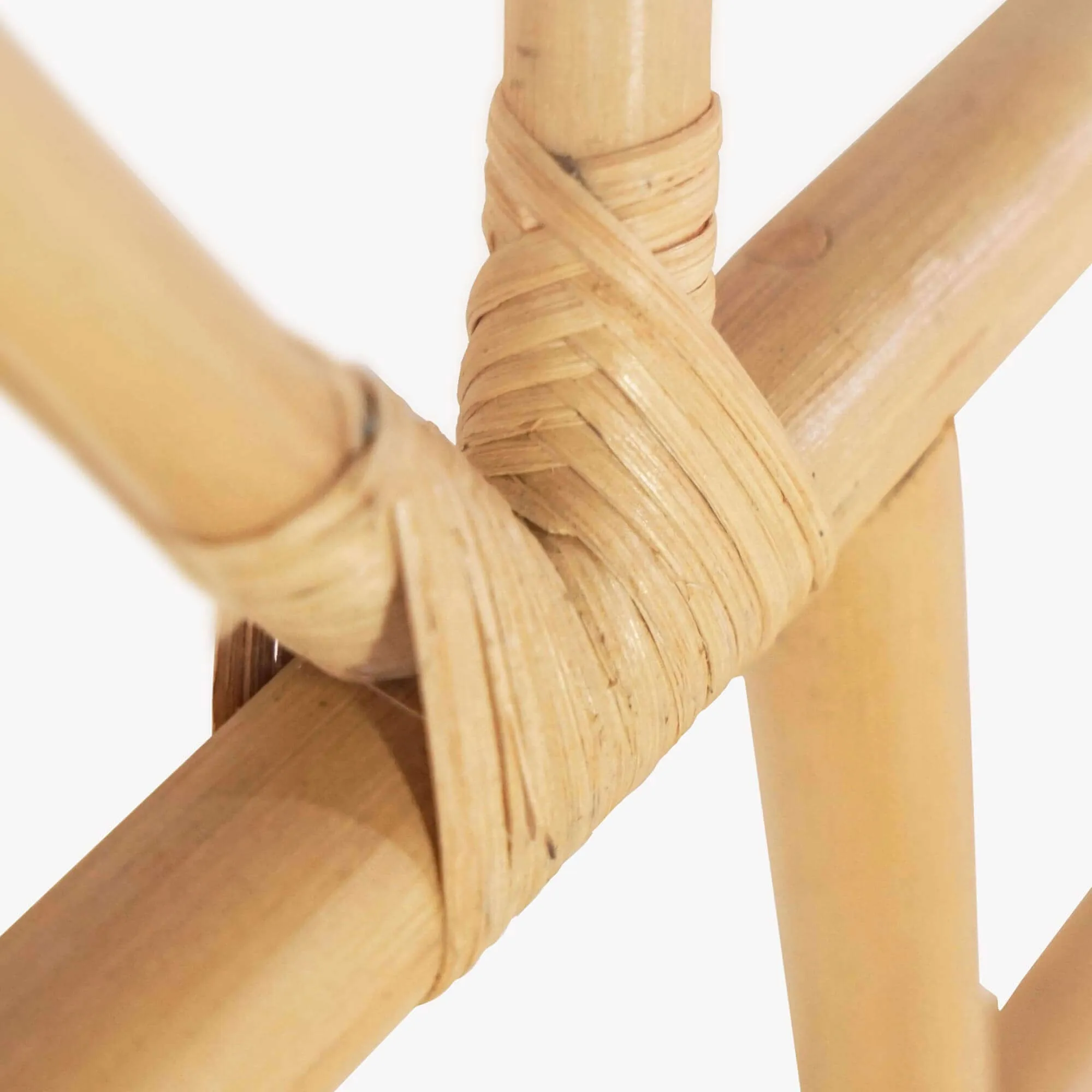 Volledig uit rotan vervaardigd, toont dit hoofdbord van 160 cm in riet een nauwkeurig handmatig werk, zichtbaar in elke binding en in de finesse van de gebogen stengels. Het vlechtwerk vormt een elegant opengewerkt patroon dat de muur laat ademen en tegelijk reliëf toevoegt. Afhankelijk van de lichtinval vangt het materiaal het licht en werpt het zachte schaduwen, wat het gevoel van visuele warmte en comfort versterkt. Het oppervlak voelt zacht en licht satijnachtig aan, trouw aan de authenticiteit van het zorgvuldig geselecteerde natuurlijke materiaal.