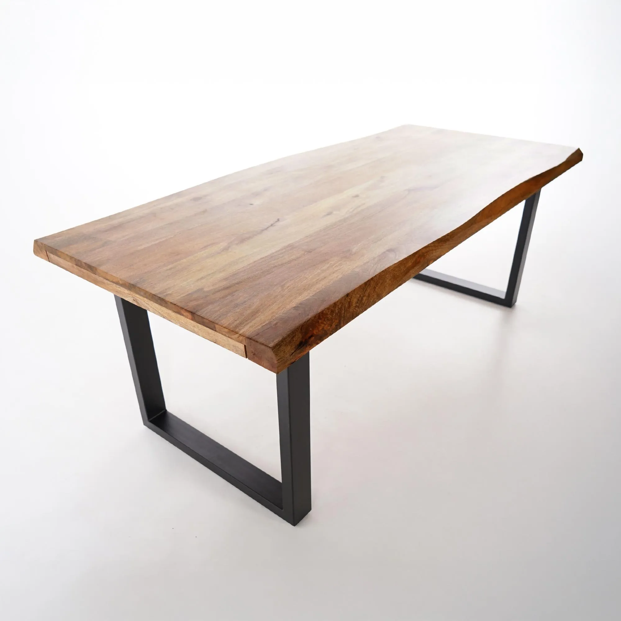 Wat deze tafel zo bijzonder maakt, zijn de zwart metalen poten die een sobere, functionele U-vorm vormen. Ze geven de tafel niet alleen een moderne toets, maar ook een opmerkelijke stabiliteit. Massief mangohout is hier de hoofdrolspeler en biedt een stevig, slijtvast oppervlak dat klaar is om de uitdagingen van het dagelijks leven aan te kunnen.