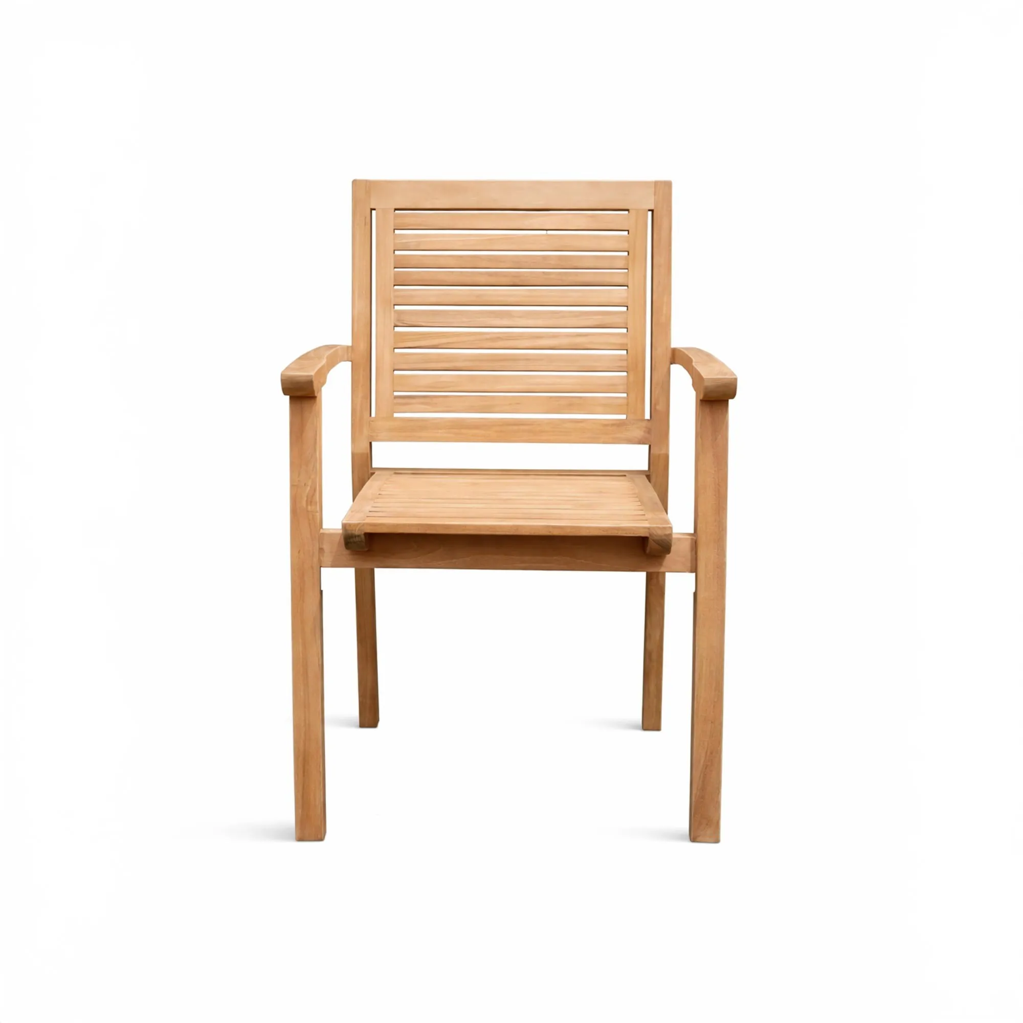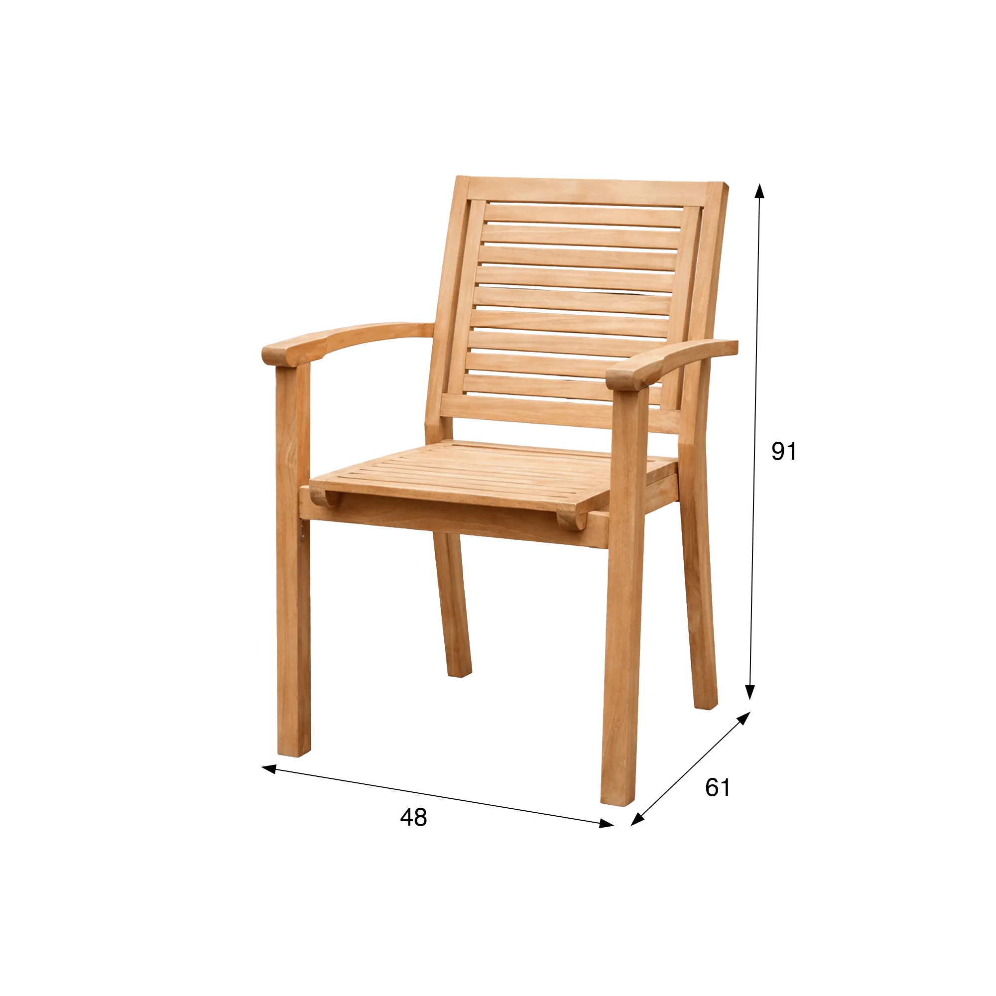 De licht hellende rugleuning van de tuinstoel met armleuningen in teakhout Tomo en de zorgvuldig geïntegreerde armleuningen dragen bij aan een doordachte ergonomie, ontworpen om dagelijks een aangename zitervaring te bieden. De verhoudingen zijn zo uitgewerkt dat ze een comfortabele houding creëren, terwijl het meubel een harmonieuze uitstraling behoudt. Met zijn evenwichtige afmetingen van 48 cm breed, 61 cm diep en 91 cm hoog vindt de tuinstoel met armleuningen in teakhout Tomo moeiteloos zijn plaats rond een tuintafel of als aanvulling op een ontspanningsruimte, zonder de compositie te verzwaren.