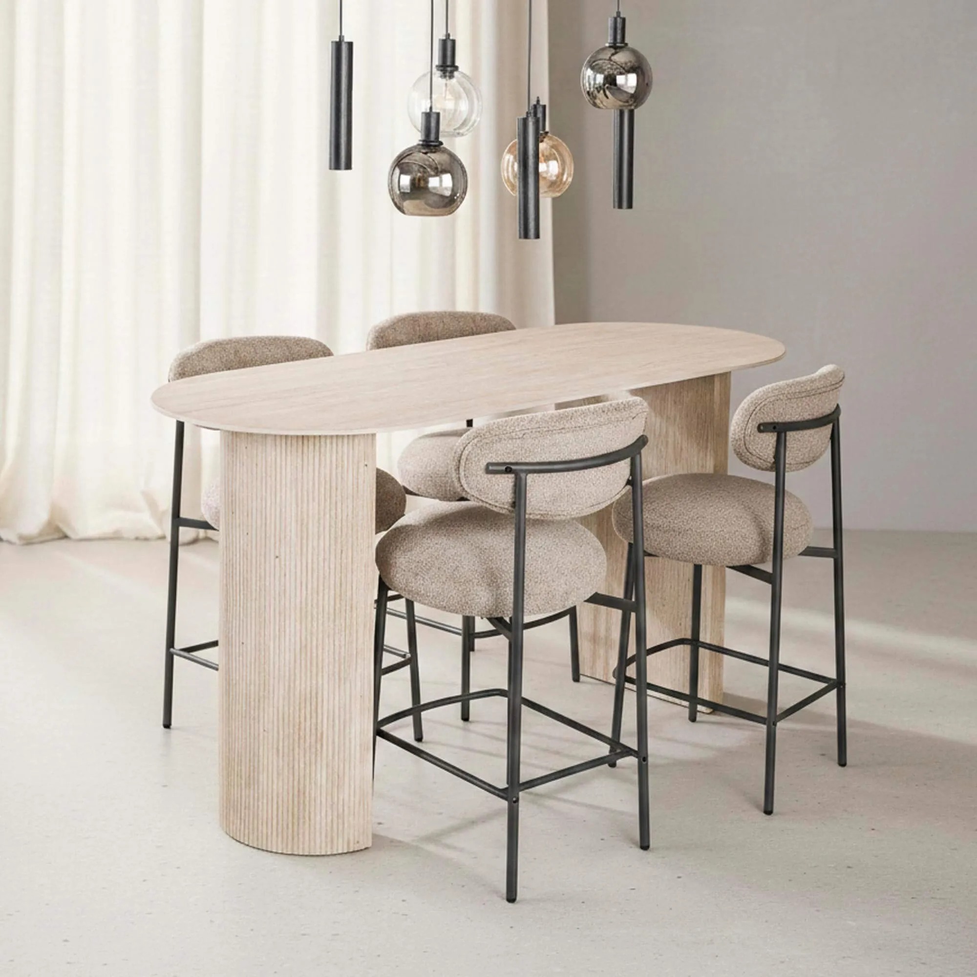 Ontworpen als een volwaardig leefelement, komt deze keukenbarstoel voor kookeiland even goed tot zijn recht in een strakke keuken als in een open eetruimte, waar hij harmonieus samengaat met zowel ruwe als verfijnde materialen. We zijn bijzonder trots op het evenwicht tussen design en functionaliteit, het resultaat van nauwgezet werk aan elk detail, van structuur tot afwerking.