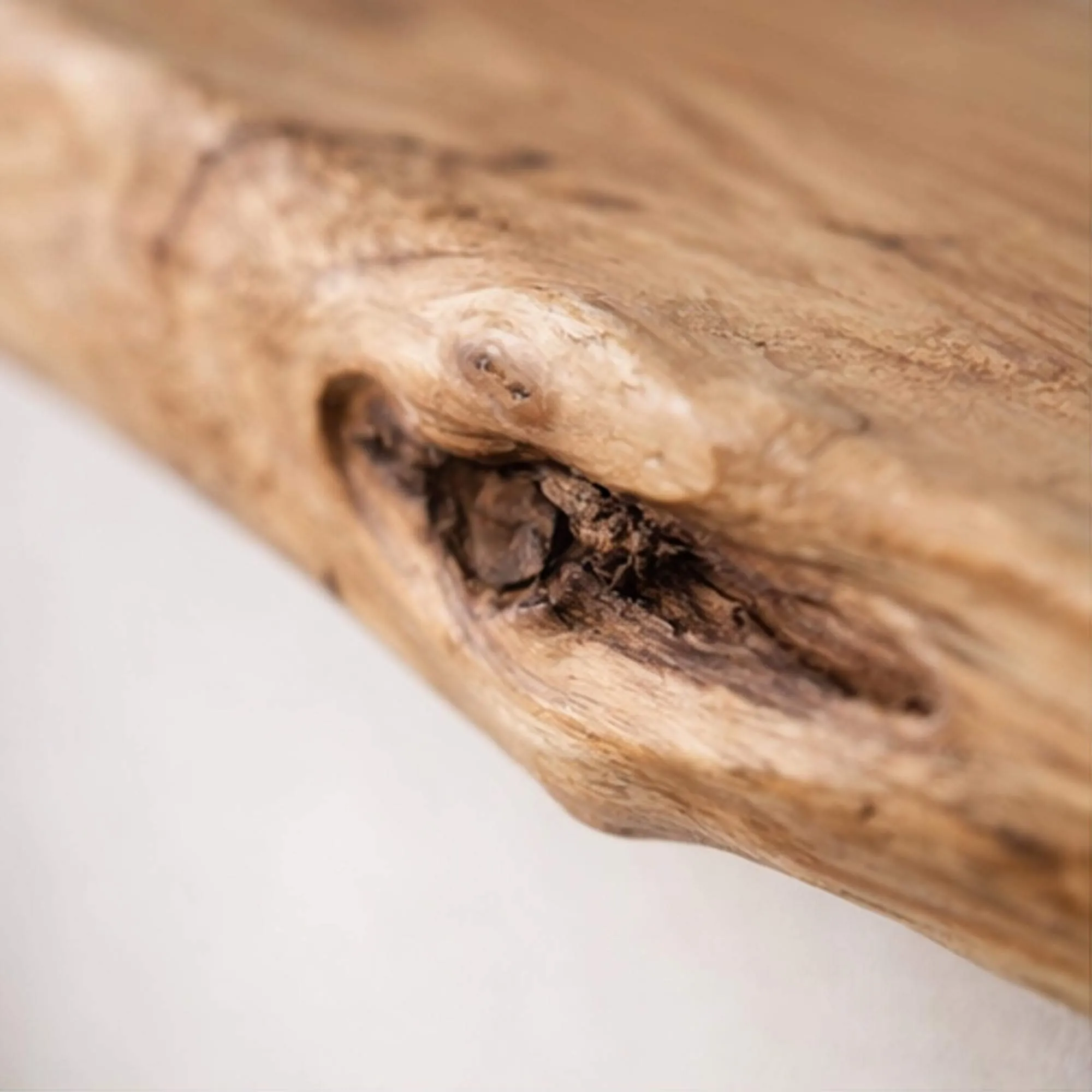 Elke legplank in acacia van deze industriële wandplank in hout en metaal (set van 5) toont een uniek houtpatroon, met warme schakeringen en organische details die het verhaal van het hout vertellen. Aanvoelend blijft het oppervlak zacht, terwijl het die authentieke uitstraling behoudt die we zoeken bij de selectie van de planken. We hebben bewust bepaalde natuurlijke onregelmatigheden behouden om de ziel van het materiaal te respecteren en een oprechte, duurzame afwerking te bieden.