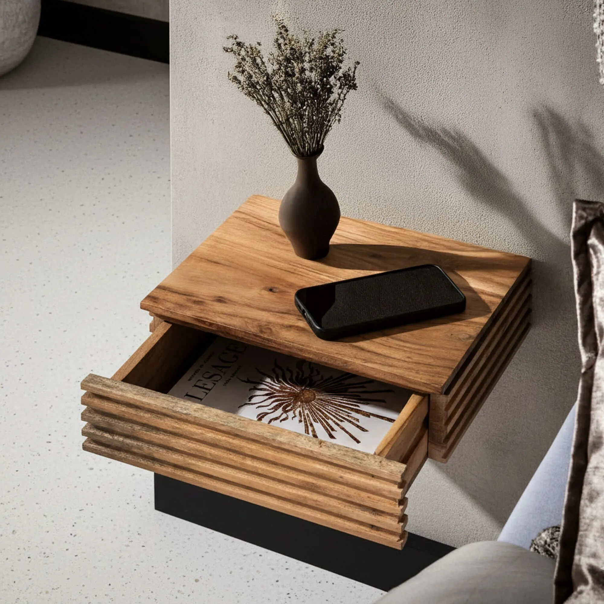 Zwevend nachtkastje van massief hout met lade (set van 2) - Nora