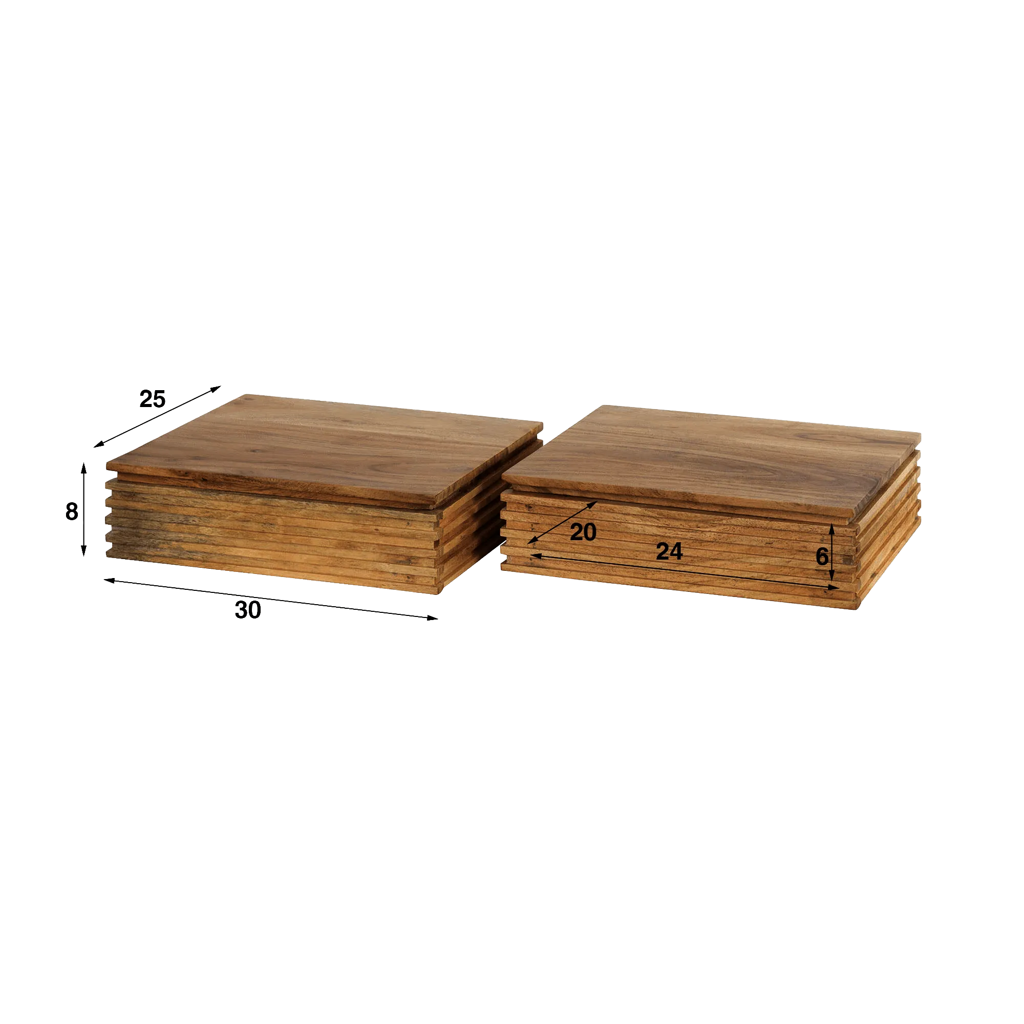 Vervaardigd uit massief acaciahout, onthult dit zwevend nachtkastje in massief hout met lade (set van 2) een levendig materiaal, rijk aan nuances en natuurlijke nerven. We besteedden bijzondere aandacht aan de horizontale gelaagdheid van het hout, die het geheel een subtiel grafisch reliëf geeft, terwijl het warme, tactiele gevoel behouden blijft. De natuurlijke tint zet de eigen variaties van acacia in de kijker, een houtsoort die bekendstaat om haar robuustheid en stabiliteit doorheen de tijd. Elk oppervlak werd zorgvuldig geschuurd en beschermd voor een gladde touch en een duurzame afwerking, geschikt voor dagelijks gebruik.