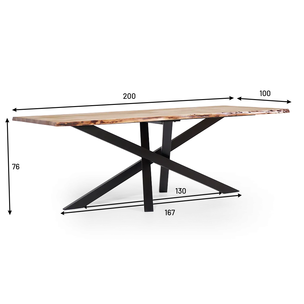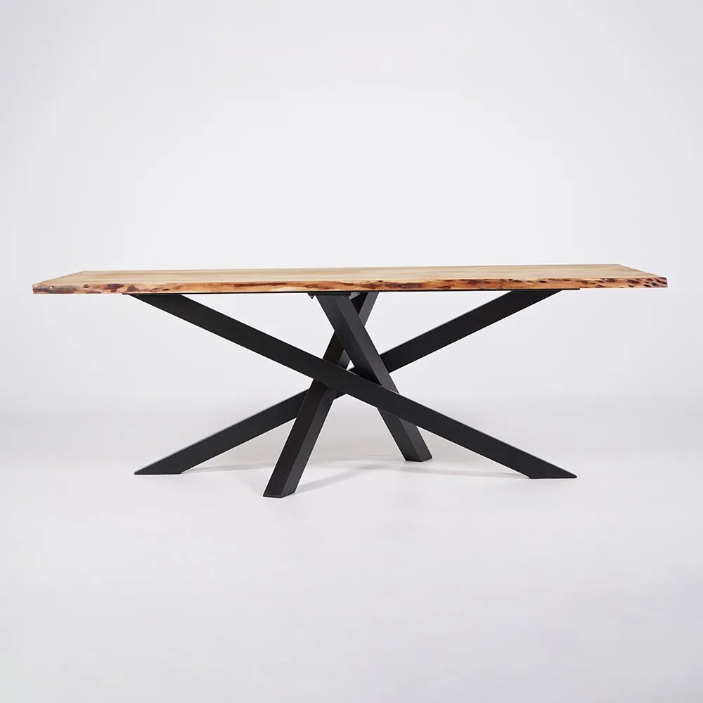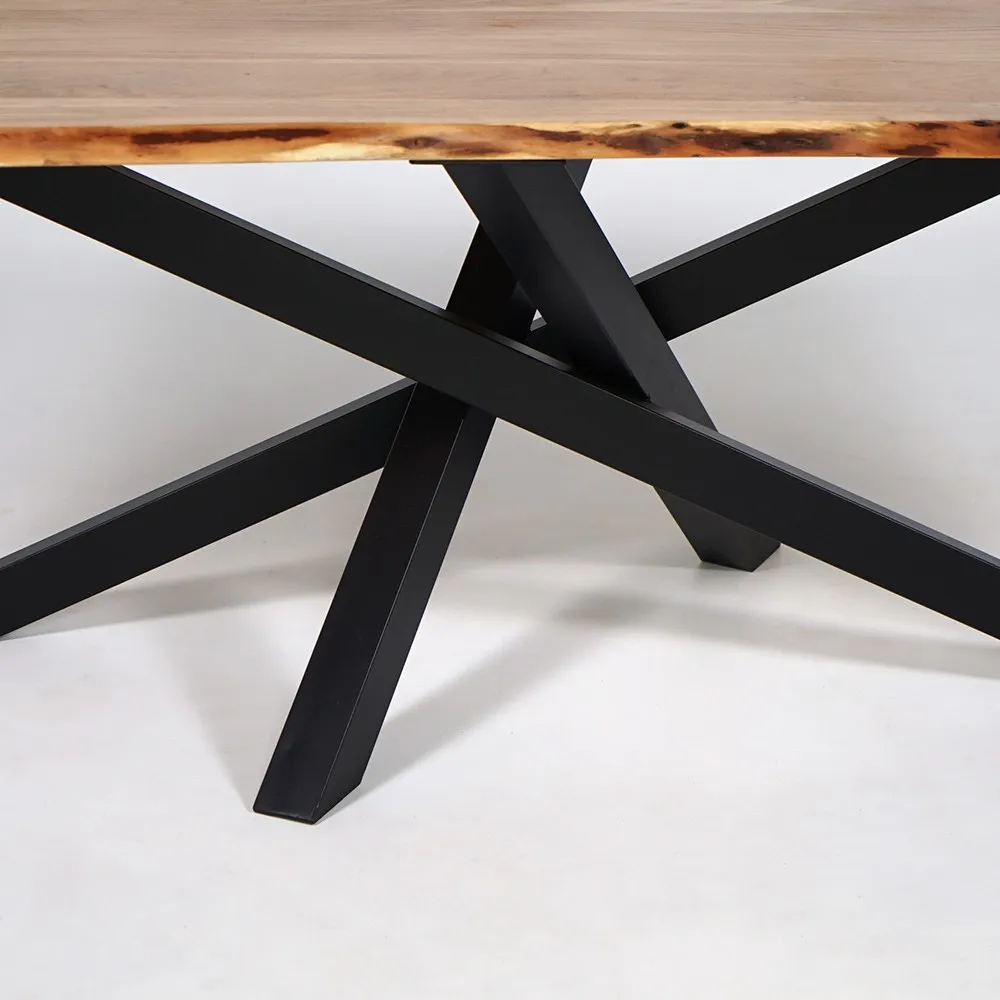 Massief houten eettafel met metalen mikado-poot en natuurlijke randen 180 cm