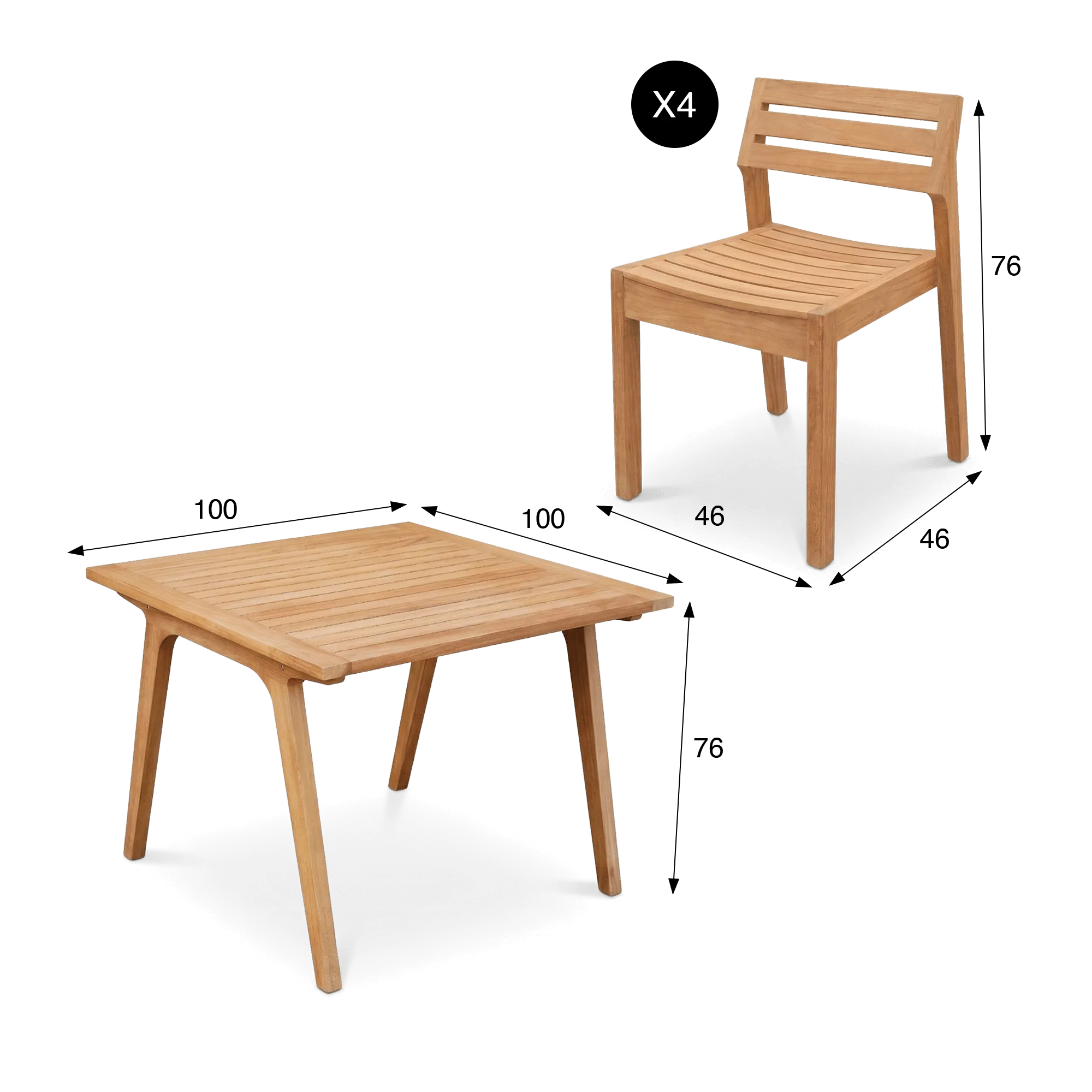 Tuinset met tafel en stoelen in teakhout voor 4 personen - Roku