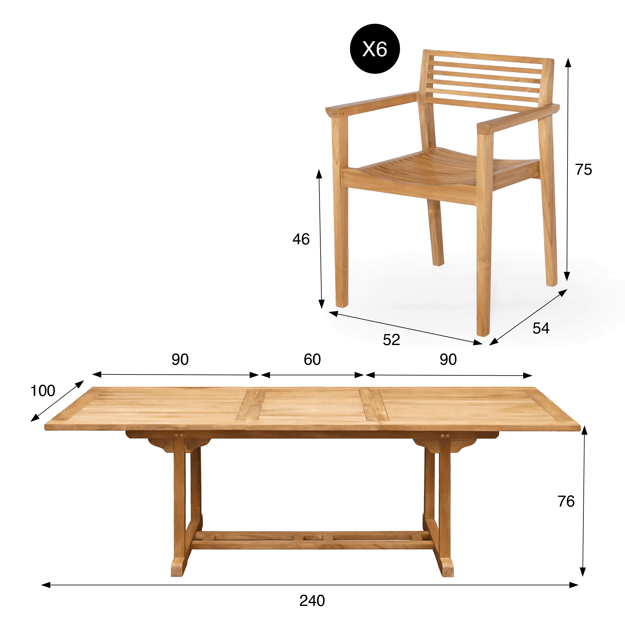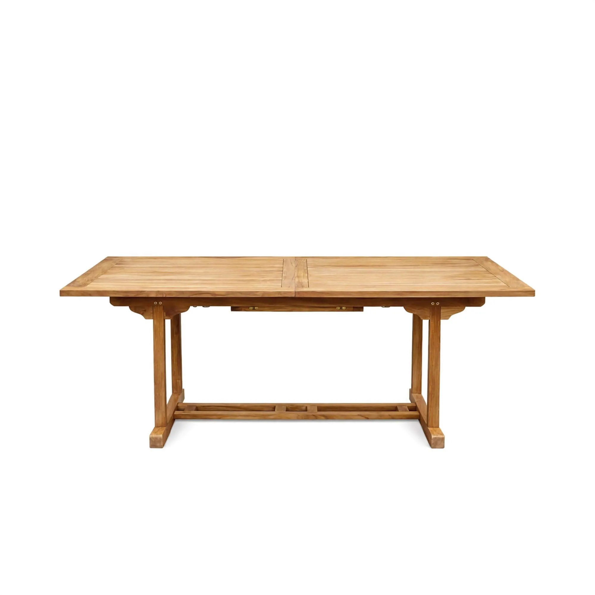 Wij hebben deze tuinset met tafel en stoelen in teakhout voor 6 personen ontworpen als een ideale oplossing om gasten in de buitenlucht te ontvangen, met behoud van een natuurlijke en tijdloze uitstraling. De uitschuifbare tuintafel Kiro brengt de volle rijkdom van massief teakhout tot uiting via een tafelblad met evenwichtige lijnen, ontworpen om zich aan te passen aan verschillende momenten van het leven. Dankzij het geïntegreerde verlengsysteem evolueert de tafel moeiteloos van een gezellig formaat naar een ruimer oppervlak waarop tot zes gasten comfortabel kunnen plaatsnemen. Deze modulariteit biedt een grote gebruiksvrijheid, ideaal voor dagelijkse maaltijden zowel als voor feestelijkere gelegenheden. Uitschuifbare tafels in teakhout worden bijzonder gewaardeerd om hun combinatie van duurzaamheid en functionaliteit, waardoor de ruimte optimaal benut kan worden zonder in te boeten op esthetiek.