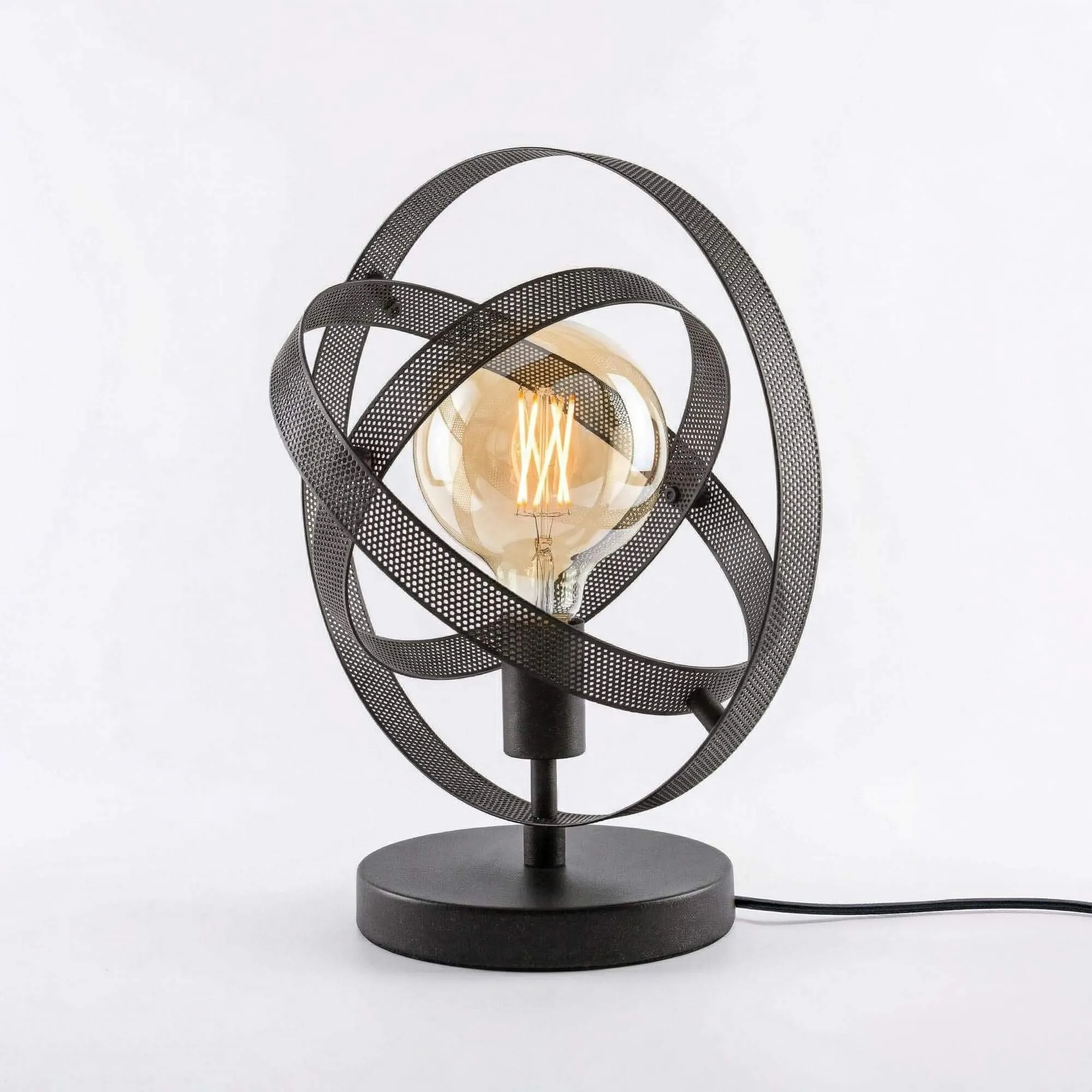 Bij het ontwerpen van de industriële bureaulamp Maddox in metaal wilden we de relatie tussen beweging en licht verkennen. Geïnspireerd door de hemelmechanica en de baan van de sterren hebben onze ontwerpers een structuur bedacht van ineengestrengelde metalen ringen die rond de lichtbron lijken te zweven. Deze luchtige compositie creëert een dynamisch silhouet, waarbij elke curve bijdraagt aan de subtiele verspreiding van het licht.