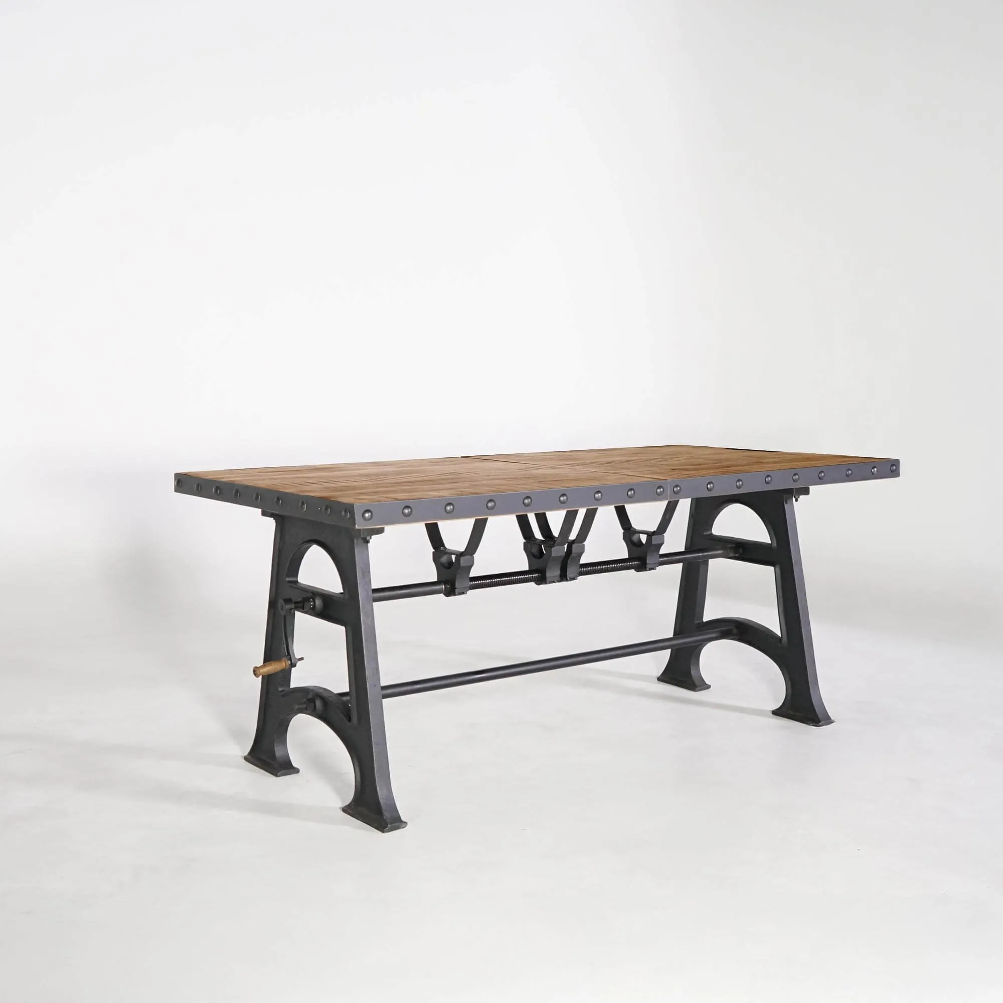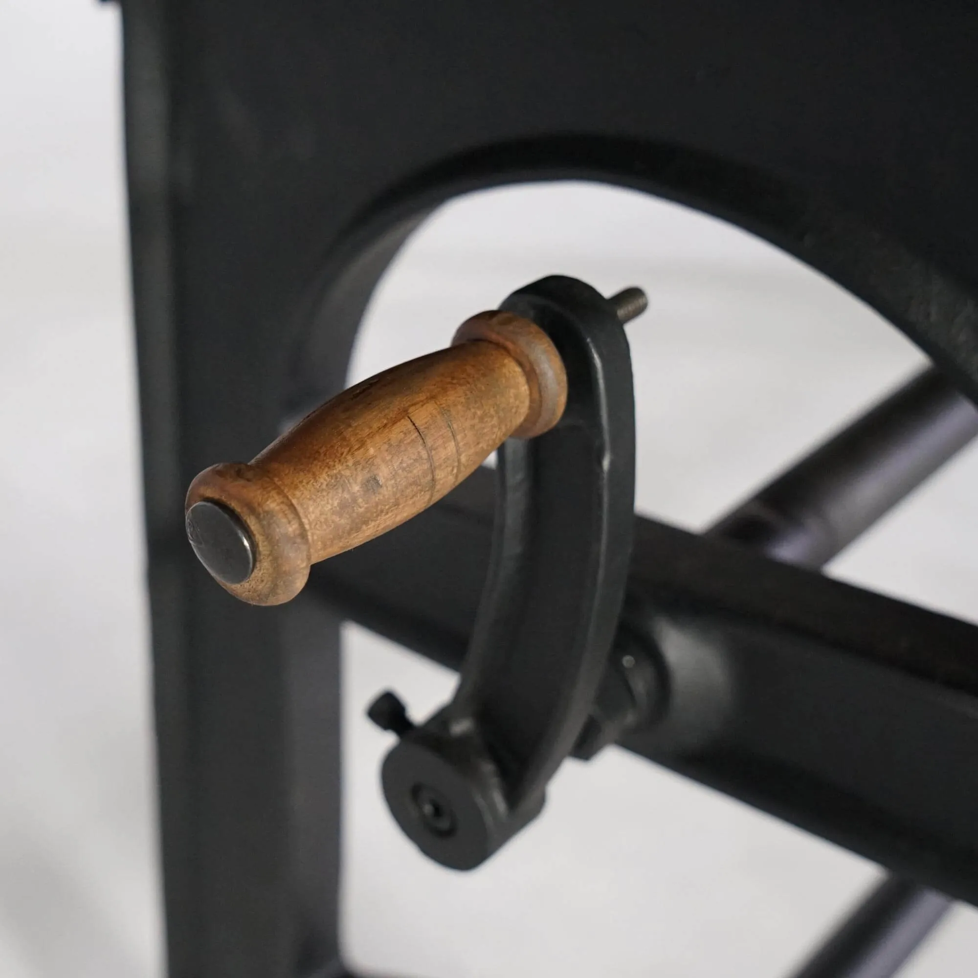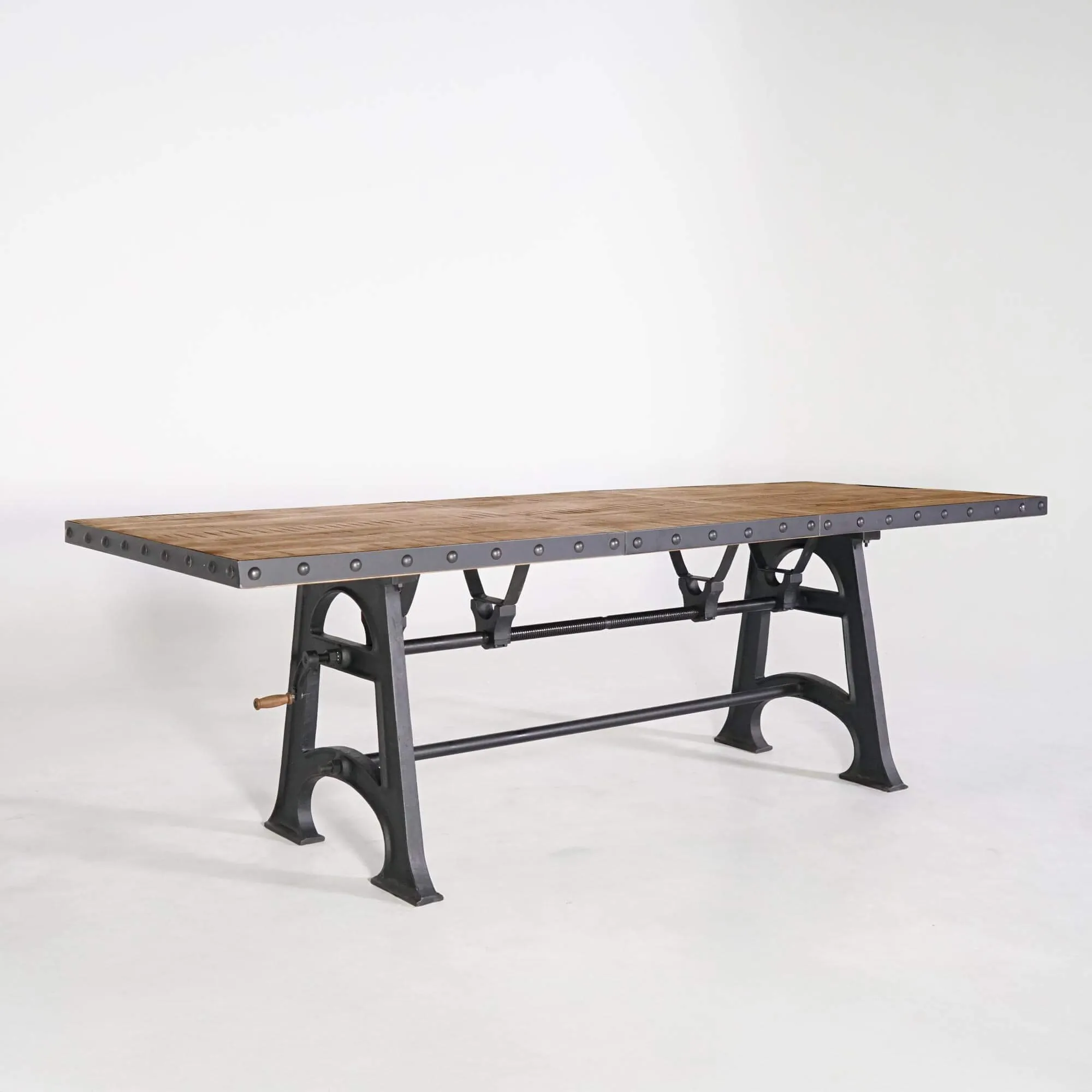 Mooie industriële uitschuifbare eettafel. De slinger aan de zijkant schuift de twee gelakte en behandelde mangohouten bladen naar de uitbouw. Lengte (180cm of 240cm met het verlengstuk). Zoals altijd bij B.A.R.A.K.'7 is de structuur zeer bestendig en is het bovenblad gemaakt van massief mangohout (gewicht: 178kg). Deze uitschuifbare industriële tafel is zeker een favoriet! De poot is gemaakt van massief gietijzer. Het oneindige schroefsysteem is geïnspireerd op werkplaats- en fabrieksmeubilair. Indien u de tabel gebruikt zonder de uitbreiding, moet de uitbreiding apart worden opgeslagen. Onze klanten zijn unaniem: deze tafel wordt het pronkstuk van uw industriële eetkamer.