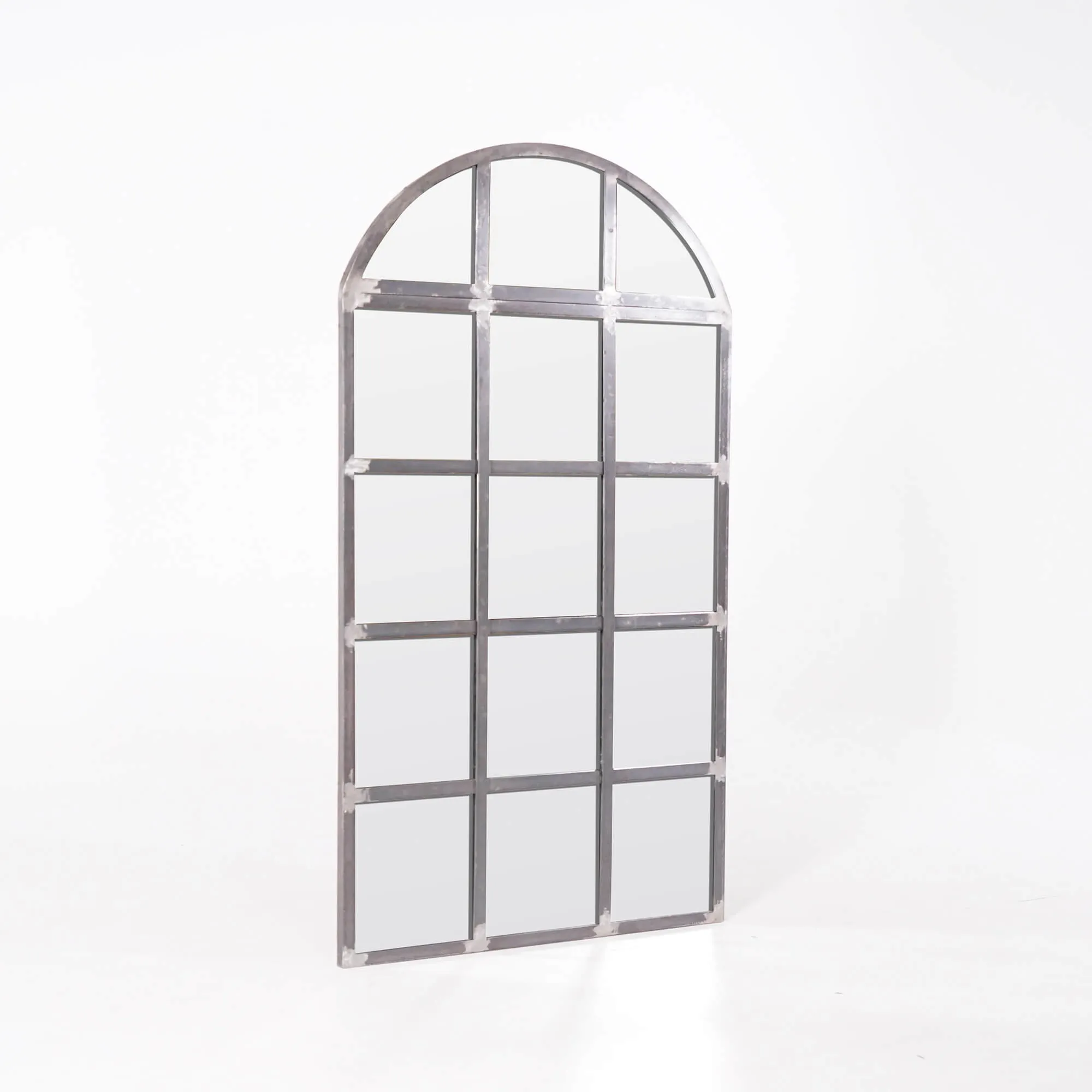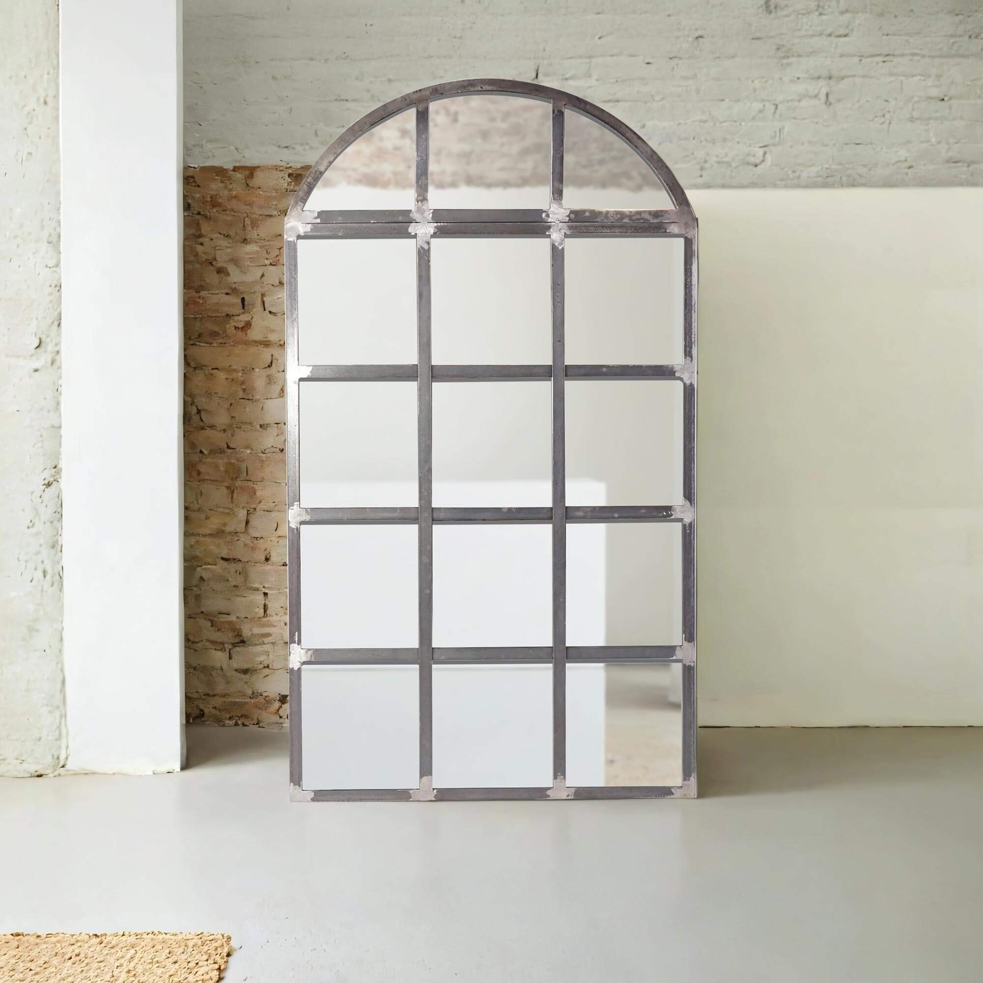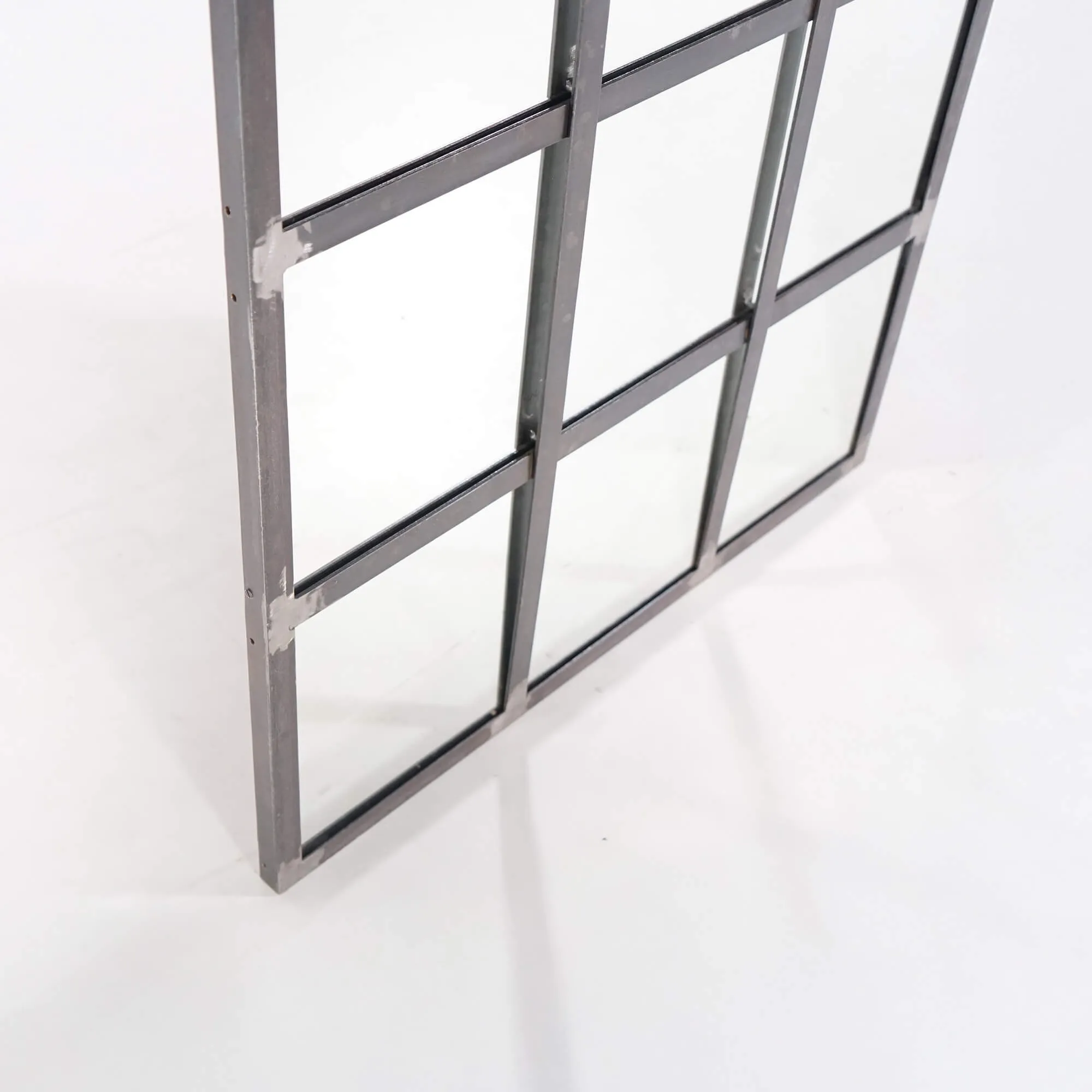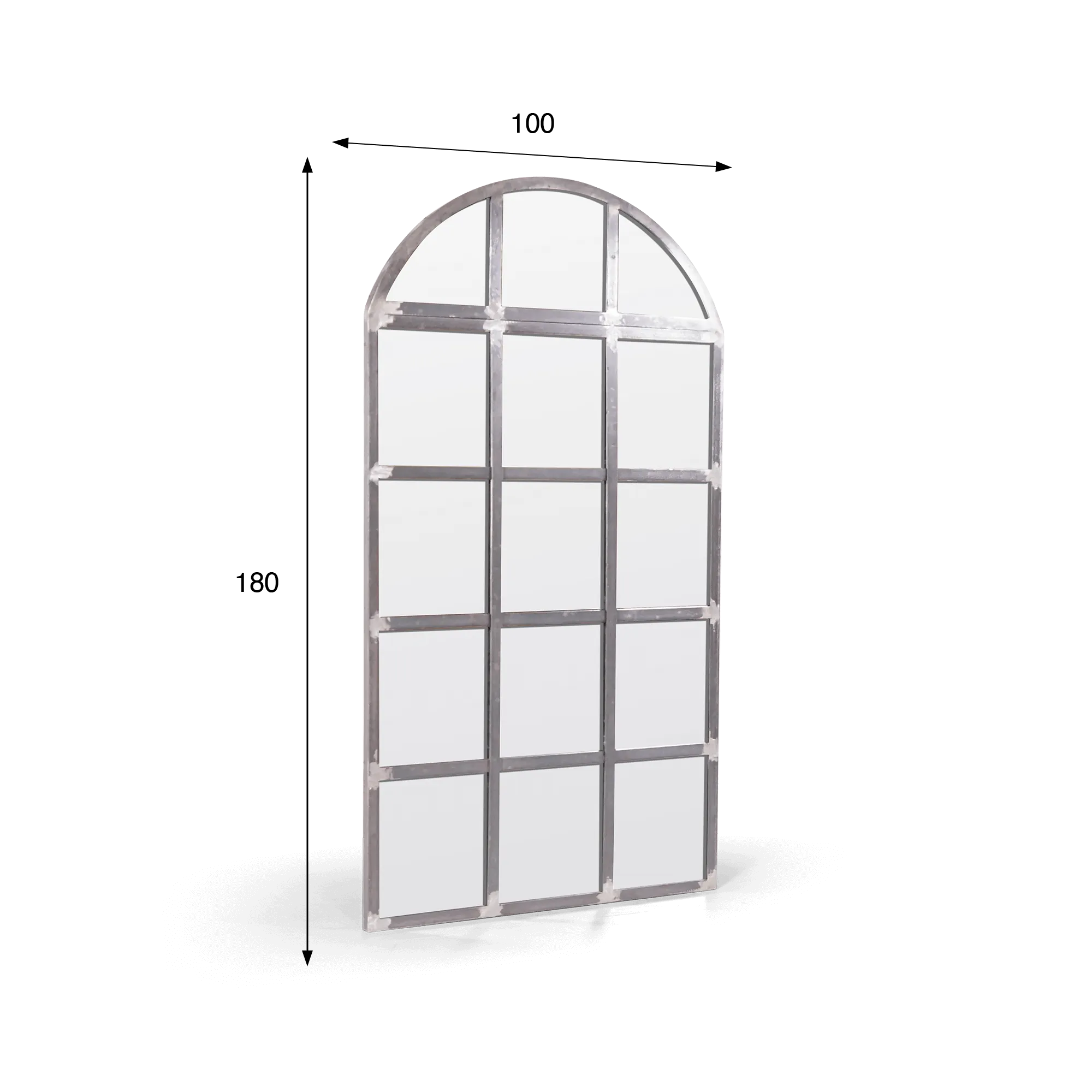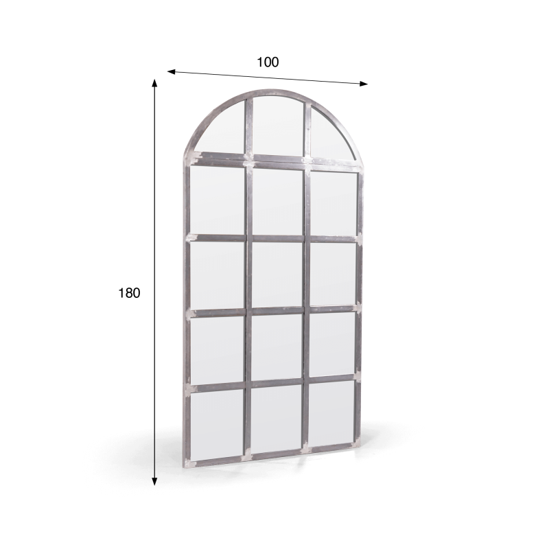 Met deze industriële spiegel om neer te zetten wilden we de geest van de oude atelierramen herinterpreteren en er een uniek decoratiestuk van maken, dat een ruimte kan vergroten en tegelijk zijn karakter kan benadrukken. Met een hoogte van 180 cm en een breedte van 100 cm maakt hij indruk door zijn sculpturale aanwezigheid, terwijl zijn sobere elegantie hem toelaat in tal van interieurs te passen.