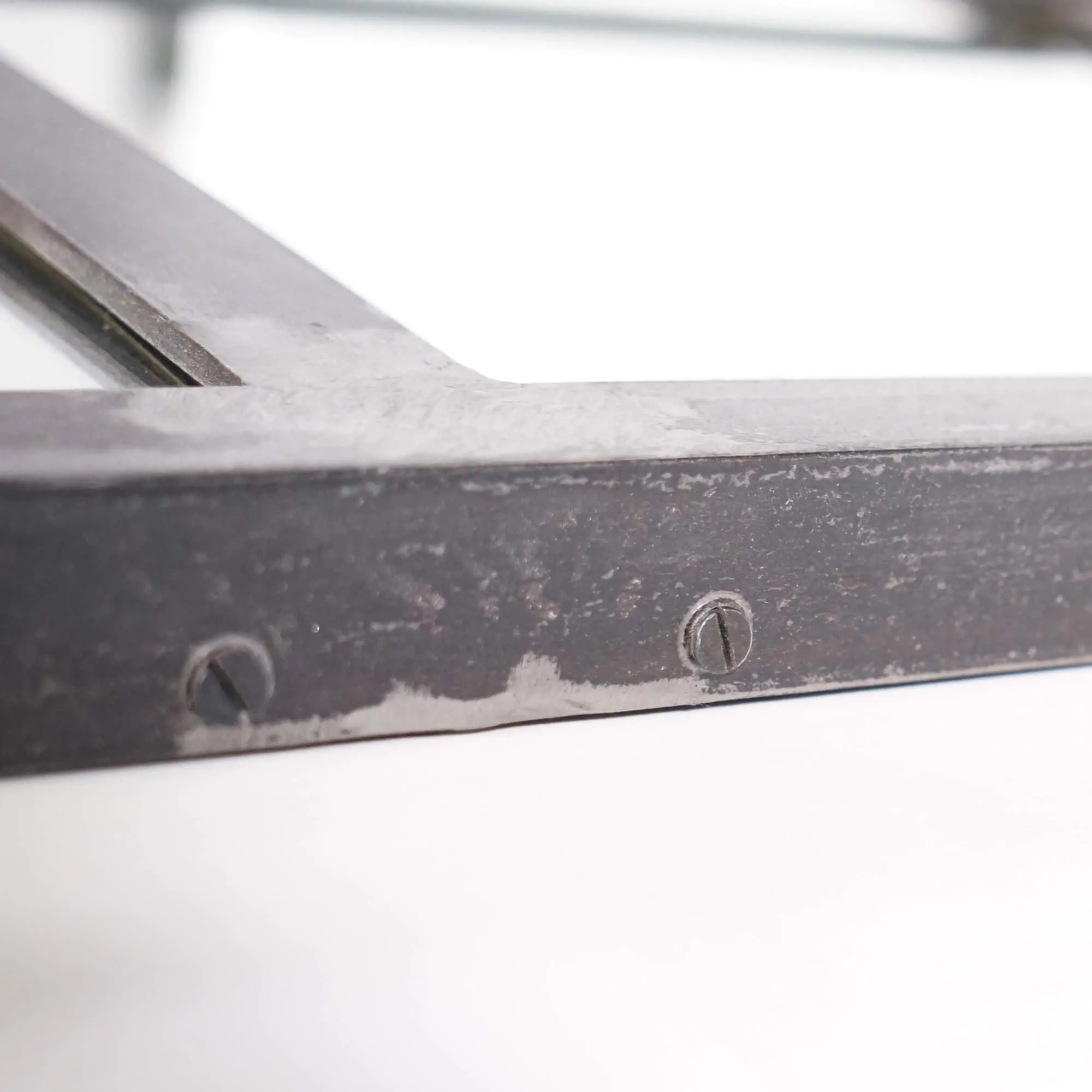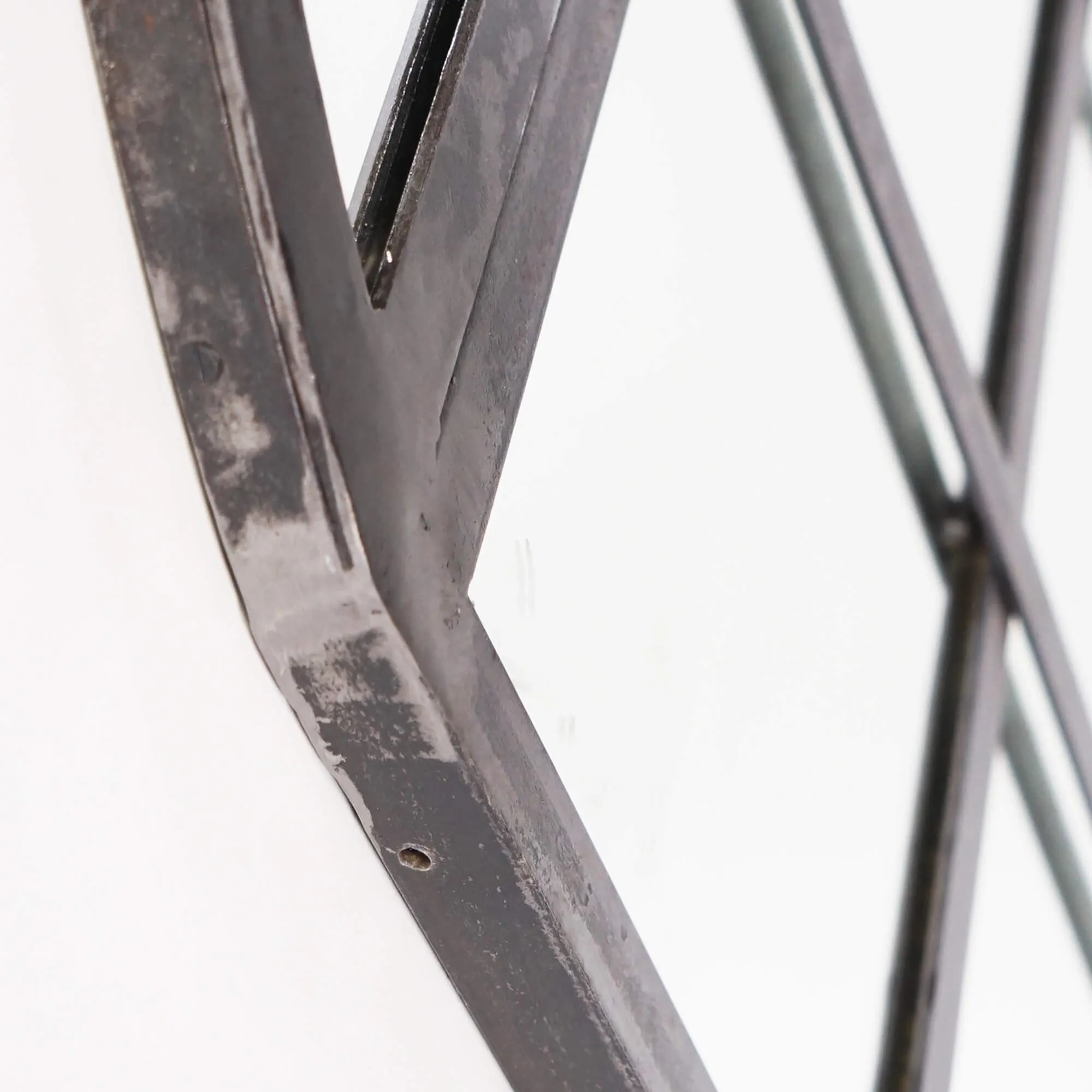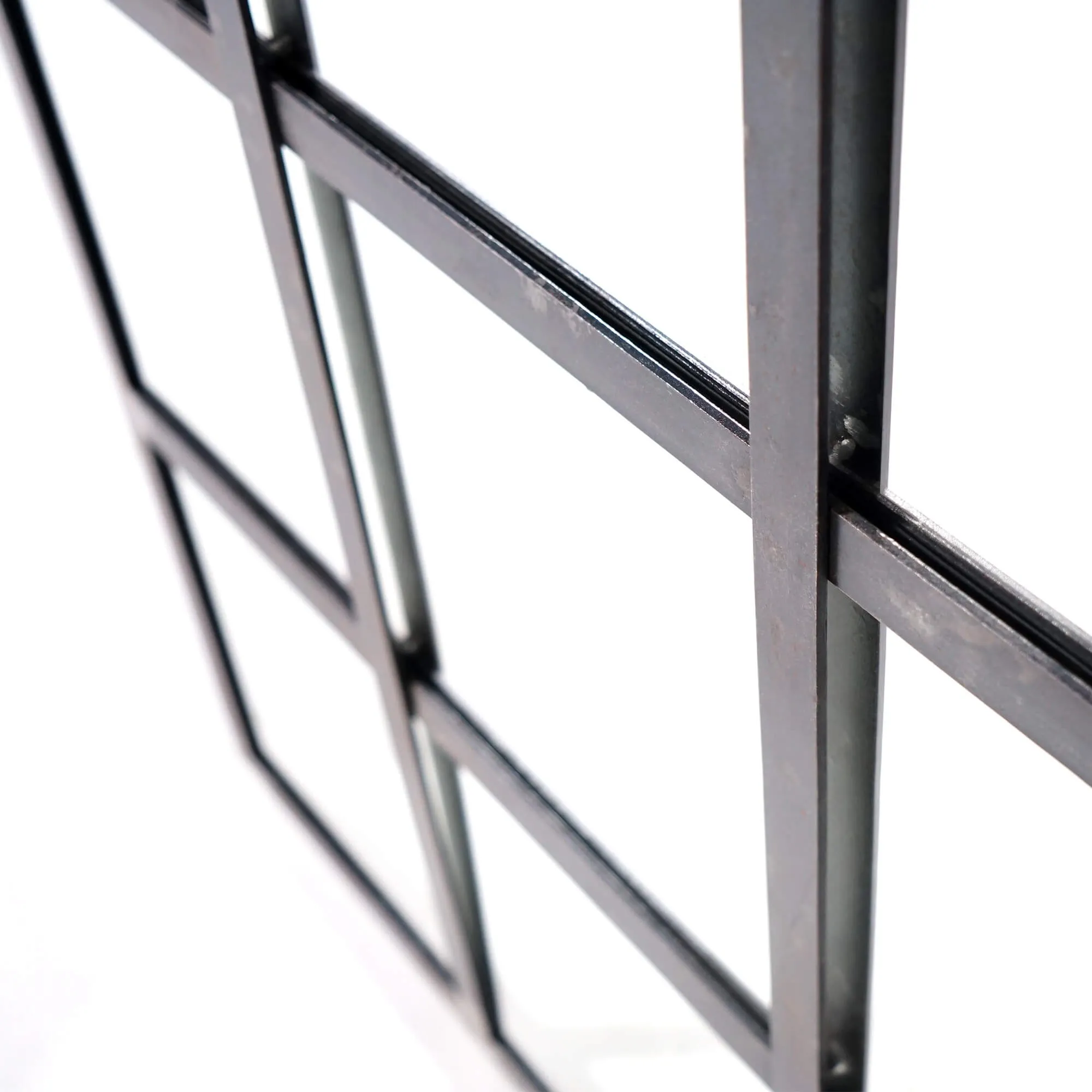 Zijn structuur in gepatineerd antracietmetaal, bewust afgewerkt met een ruwe en authentieke uitstraling, versterkt de industriële inspiratie. De onregelmatigheden en lasnaden die zichtbaar zijn, vormen details die de ambachtelijke vervaardiging benadrukken en elke spiegel een uniek cachet geven. De metalen stijlen tekenen een regelmatige rasterstructuur die herinnert aan de fabriekramen van vroeger en tegelijk een grafische, eigentijdse toets brengt.